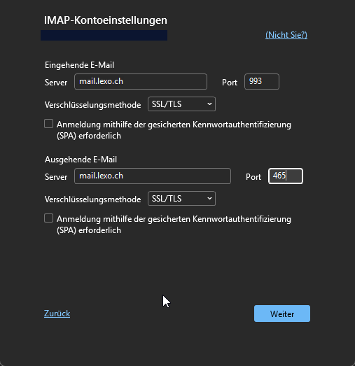 Our server rapidly blocks erroneous login attempts for security reasons. A block can last from a few minutes to several hours. When setting up your email account, please pay very close attention to entering all access data correctly from the beginning and activate SMTP authentication (if the configuration cannot be done automatically or fails).