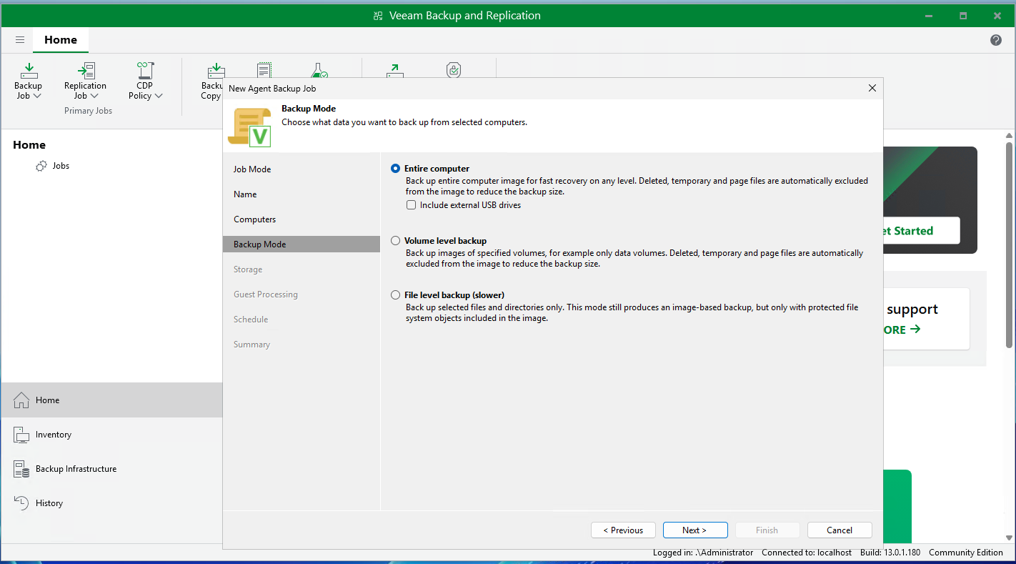 7. Beim Backupmodus können  Sie wählen, was sie wollen. Ich empfehle "Entire Computer"