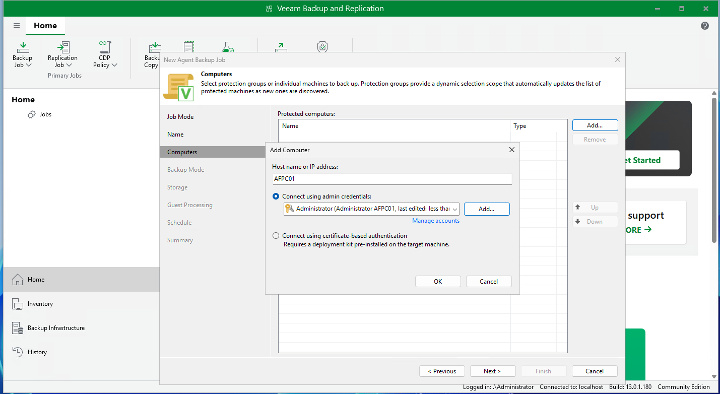 2. Sollten Sie das Problem haben, dass Ihr PC nicht erkannt wird von Veeam:
