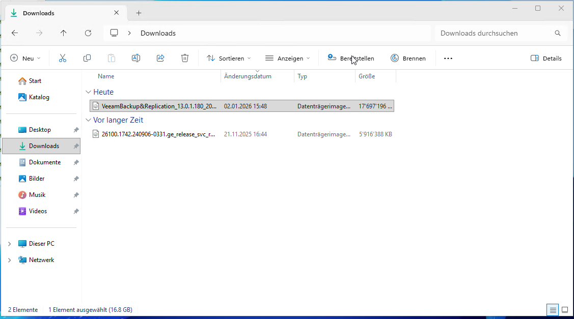 1. ISO herunterladen: https://www.veeam.com/products/free/backup-recovery.html (Community Edition)