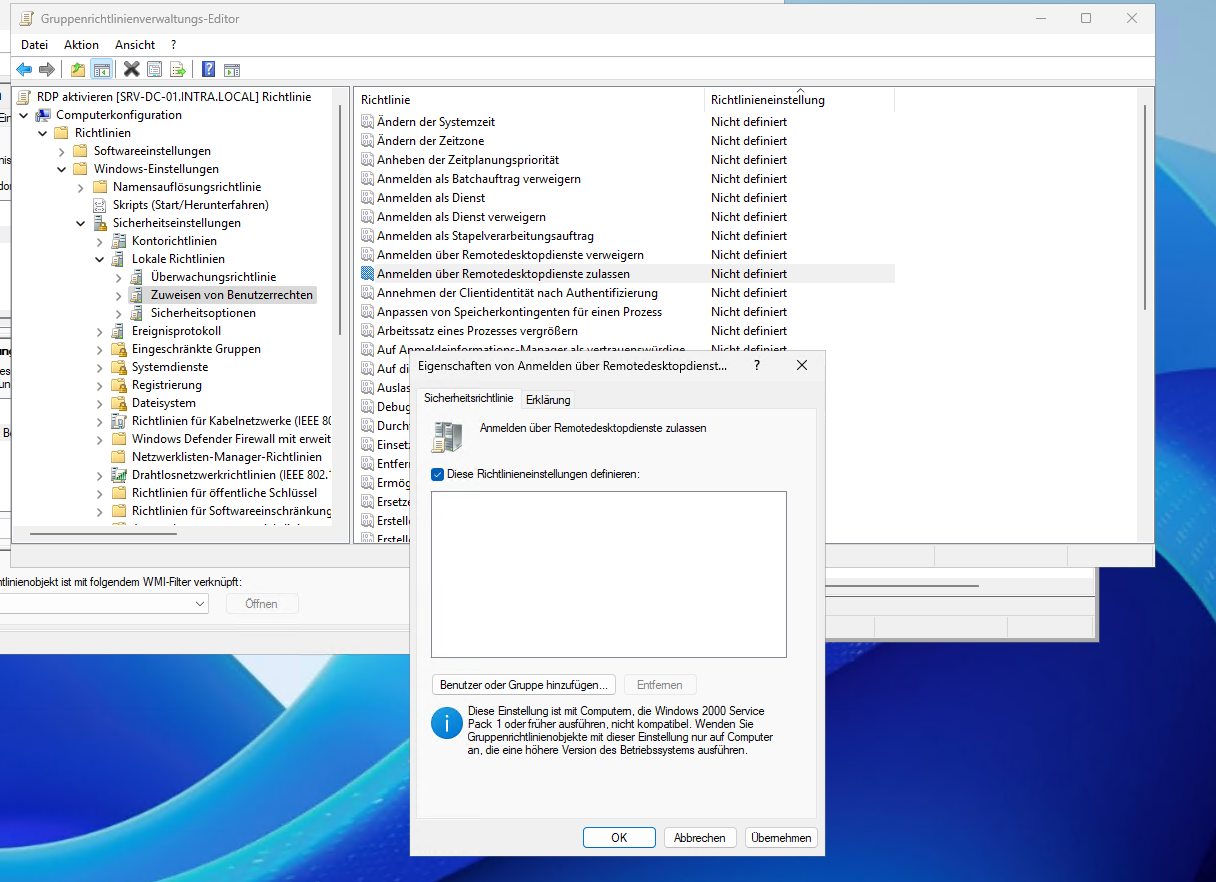 Remote Desktop auf allen Clients per GPO auf Windows Server 2008R2 aktivieren